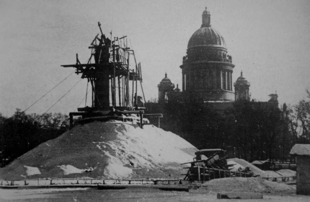 Работа над памятником длилась 12 лет. Самым сложным было доставить гигантскую гранитную скалу в город и установить ее на выбранном месте. Не менее сложная задача состояла в отливке памятника из бронзы. На протяжении всего времени работ случалось множество форс-мажорных ситуаций. Ломались трубы при отливке монумента. Бронзовую скульптуру отливали больше года, и удалось все сделать только со второй попытки. Сложность состояла в том, что задняя часть монумента должна была быть тяжелее передней. Эта задача была достигнута путем колоссальных усилий и труда скульптора.