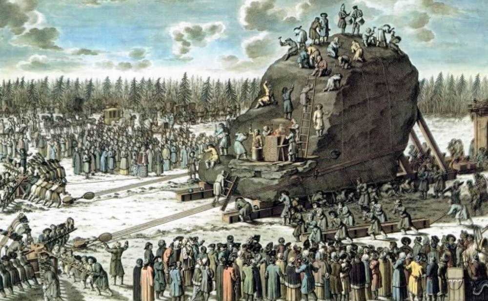 Транспортировка глыбы потребовала усилий более 1 000 человек и около полугода времени. На Сенатскую площадь камень прибыл 26 сентября 1770 года. За его разгрузкой наблюдало огромное количество людей.