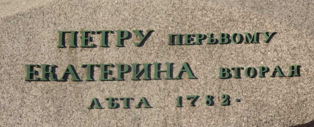 Увенчала постамент памятника надпись царицы: «Екатерина II Петру I».