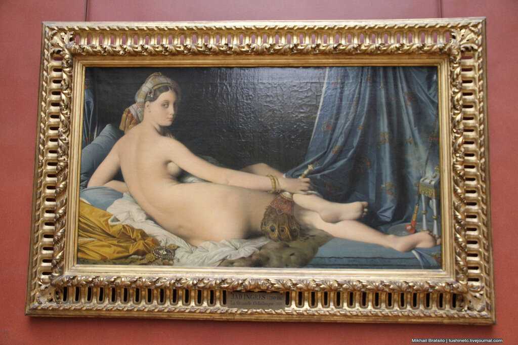 Автор полотна «Большая одалиска», Жан Энгр, перенёс древнюю тему женского «ню» на Восток. Мысленные путешествия художника в далекие жаркие страны стали поводом для создания чувственного образа гаремной женщины. Обнаженную натуру Энгр дополнил экзотическим декором.