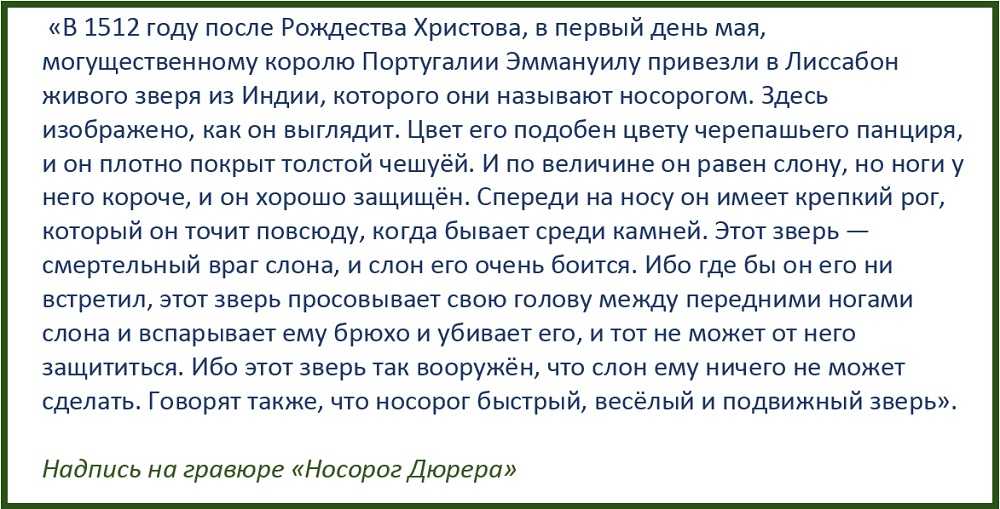 Пожалуй, самое знаменитое изображение носорога так называемый «Носорог Дюрера», созданный в 1515 году. Сам он не видел это диковинное для Германии животное. Художник вообразил его облик по описаниям и чужим рисункам.