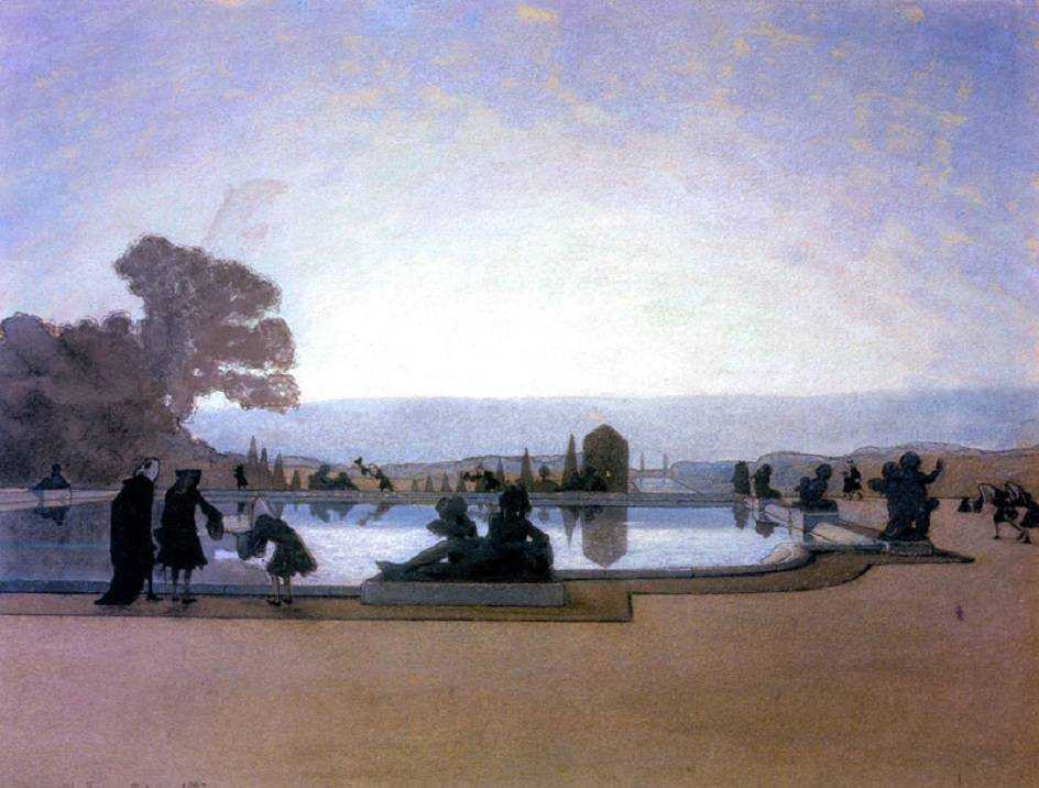 С 1897 по 1898 годы Бенуа пишет серию акварельных картин о Версальских парках. И снова критики говорят не о великолепии природы, а о явно воссозданном духе ушедших времен, атмосфере красивого великолепного былого.