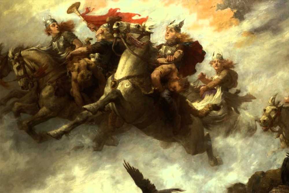Валькирия – настоящая дева-воительница, рассекает по небу на крылатом коне-облаке. Ее цель – не уничтожение врагов, а подбирание павших в честной борьбе воинов. Их души она отправляет в Валхаллу или небесный дворец павших, который одновременно является для них раем. Валькирия выбирает только воинов отмеченных Одином. Их должно быть ровно половина. Вторую половину павших отправляют в Фольквангр служить богине Фрейе.