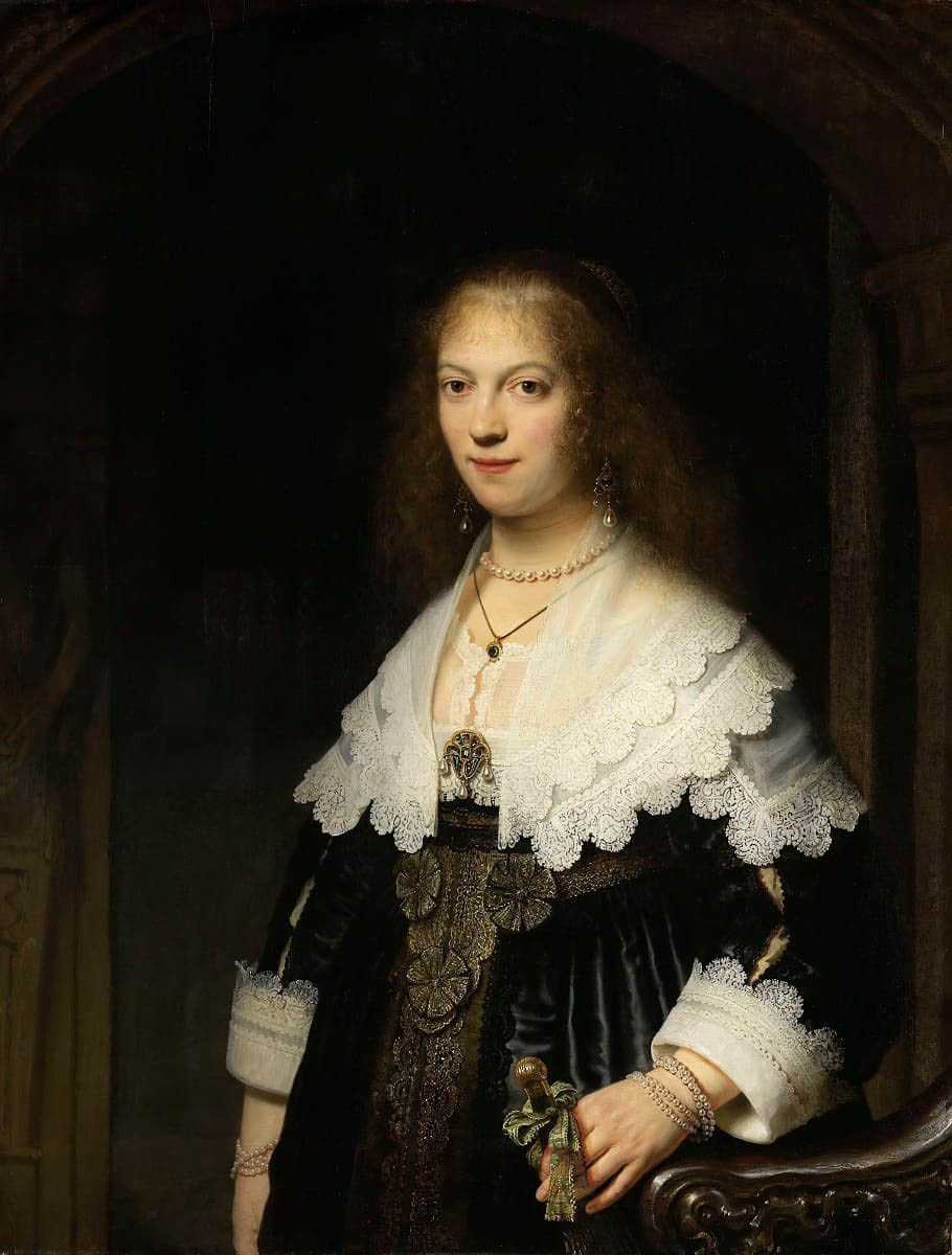 Приблизительно две трети дошедших до нас картин Рембрандта и четверть его гравюр составляют портреты. Пик творчества Рембрандта как портретиста приходится на 1630-е годы, когда богатые амстердамцы выстраивались возле его мастерской буквально в очередь. Деталь «Портрета Йоханнеса Юттенбогерта» может служить примером такого заказного портрета. Большинство портретов — поясные, как, например «Портрет Корнелиуса Тромпа». Впрочем, встречаются у Рембрандта и портреты, написанные в полный рост «Сюзанна ван Коллен, жена Жана Пелликорна, и её дочь», около 1632-34 года. Самыми же выгодными были заказы на групповые портреты. Среди них можно упомянуть шедевры «Урок анатомии доктора Тюльпа», «Ночной дозор» и «Синдики». Кроме того, Рембрандт написал целую серию неформальных портретов членов своей семьи.