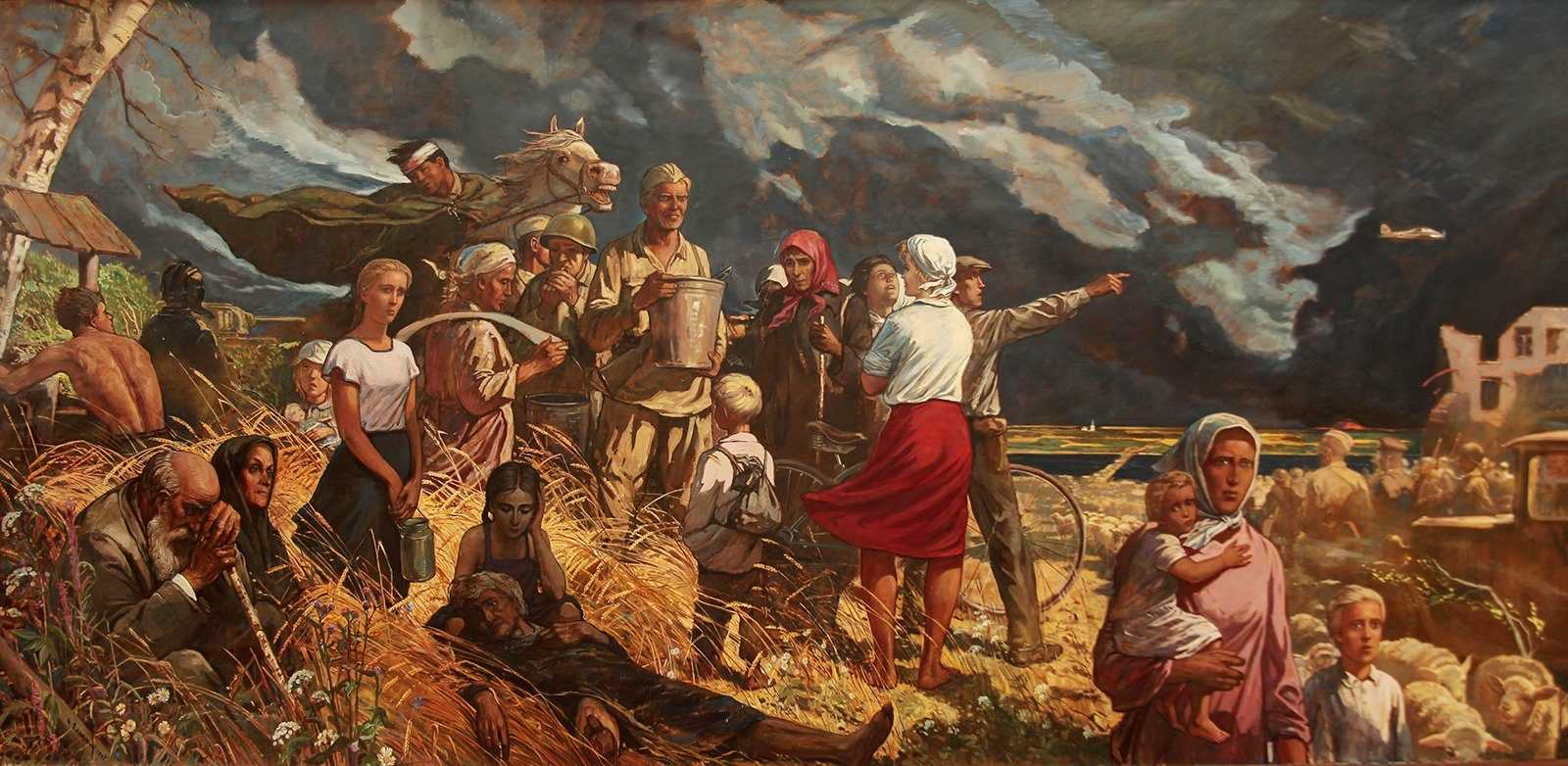 Картина с самой драматичной судьбой. На самом деле она была написана в конце 50-х и представлена в качестве дипломной работы (Глазунов заканчивал Ленинградский художественный институт имени Репина). Но… на ней изображалось отступление советских войск. И это привело руководство института в ужас. Только в 1964 году Глазунов показал ее на выставке. Увидели ее в итоге немногие — вскоре после выставки она была просто уничтожена… В 1985 году Глазунов написал ее заново.