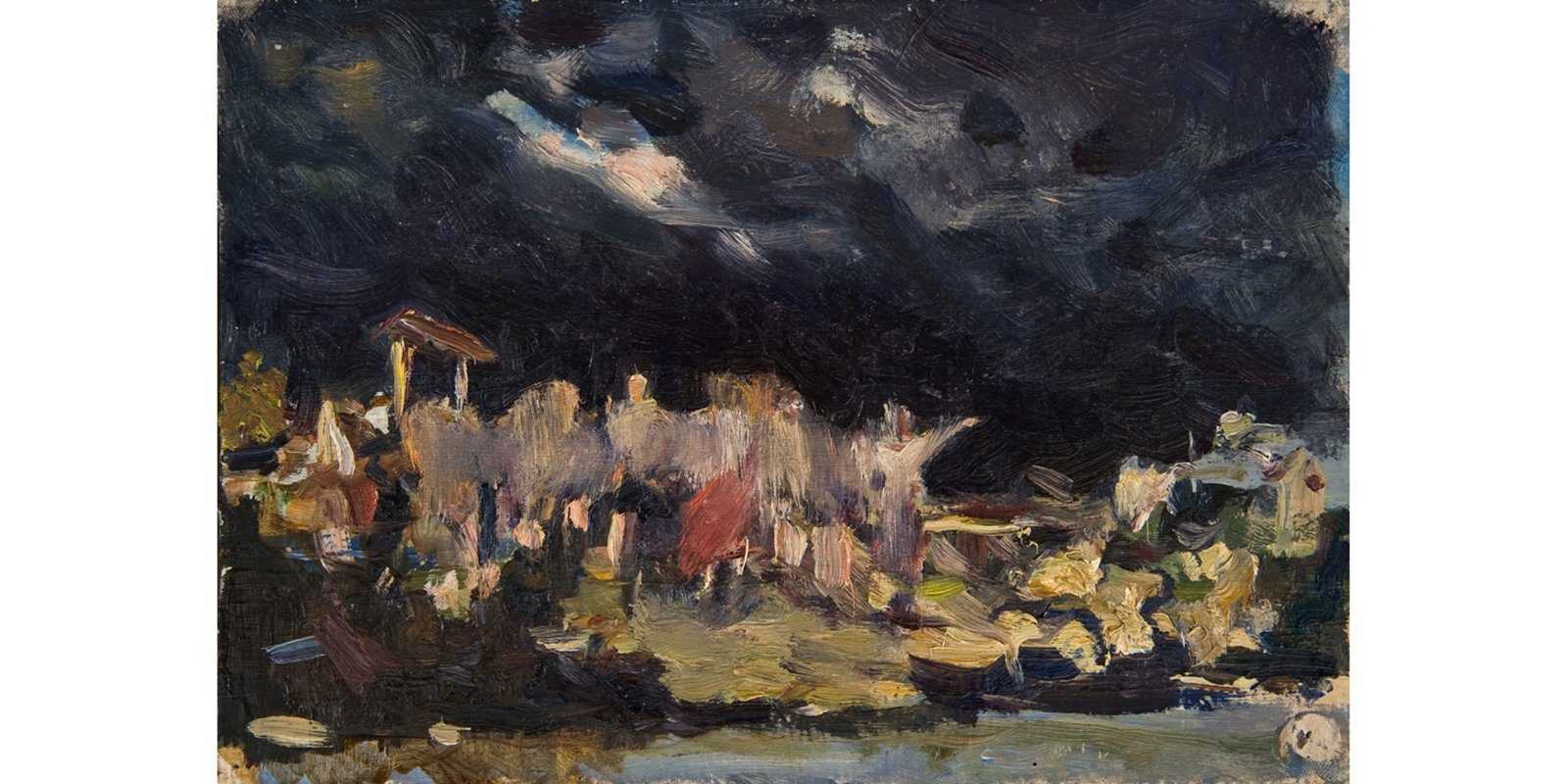 Символично, что ветер гонит эти темные, грозные тучи вместе с черным дымом в сторону противоположного высокого берега. Словно тучи врагов стремятся захватить всю Русь, победить ее.