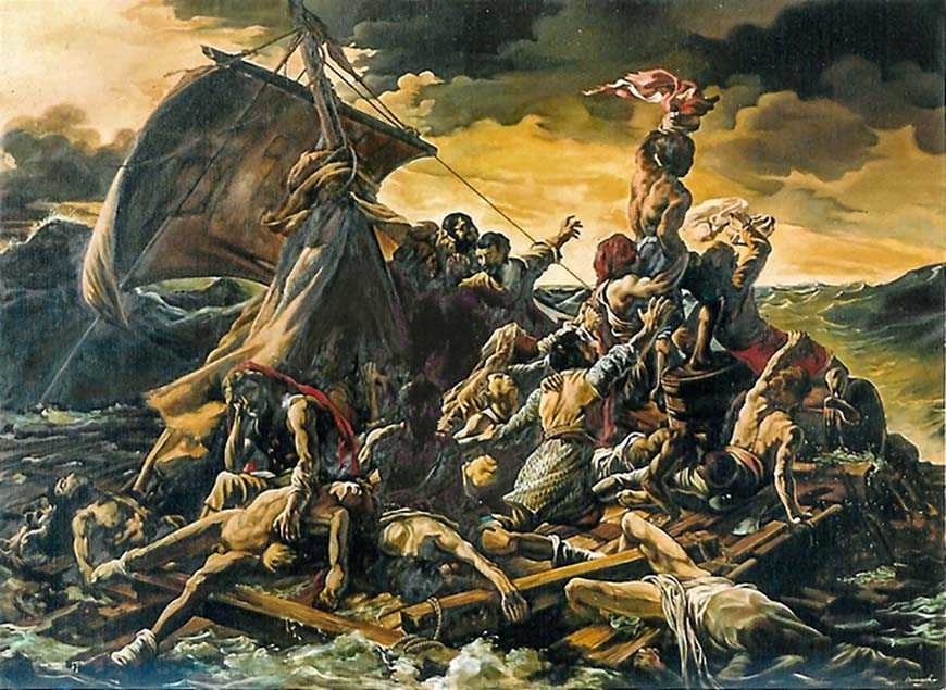 Méduse был французским военным кораблем, который участвовал в наполеоновских войнах. Несмотря на то, что он устоял в боях, в июле 1816 года он разбился о песчаную отмель, когда перевозил людей в Сенегал. 400 человек на борту были эвакуированы; из них 151 — на плот. Этим людям на плоту пришлось пережить ужасное испытание. Многие были смыты в море штормом; другие восстали и были убиты офицерами; оставшиеся в живых занимались каннибализмом. Когда припасы заканчивались, раненых бросали в море. После 13 дней в море плот был найден и в живых осталось всего 15 человек. Событие превратилось в международный скандал. Теодор Жерико тщательно изучил инцидент, прежде чем создать этот шедевр. Плот Медузы оказался чрезвычайно влиятельным во французском искусстве; считается культовым произведением французского романтизма и увековечил инцидент, который изображает.