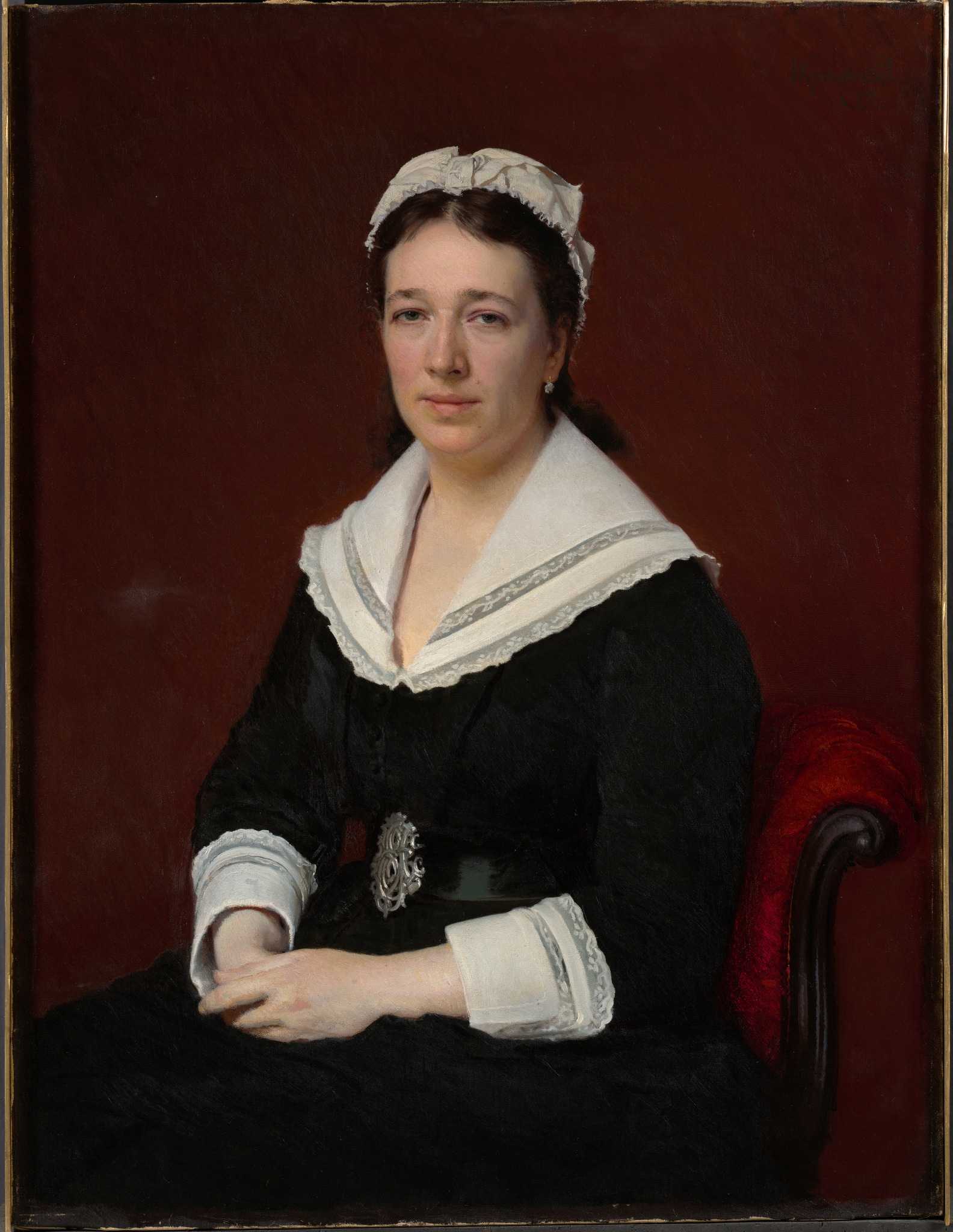 Этот портрет, где модель была изображена на однотонном фоне, в скромном платье и головном уборе, с руками, сложенными на коленях, со спокойным взглядом, устремлённым на зрителя, Александре Павловне нравился больше предыдущего. По её мнению, лучше всего были переданы глаза: «…слегка близорукие и слегка улыбающиеся».