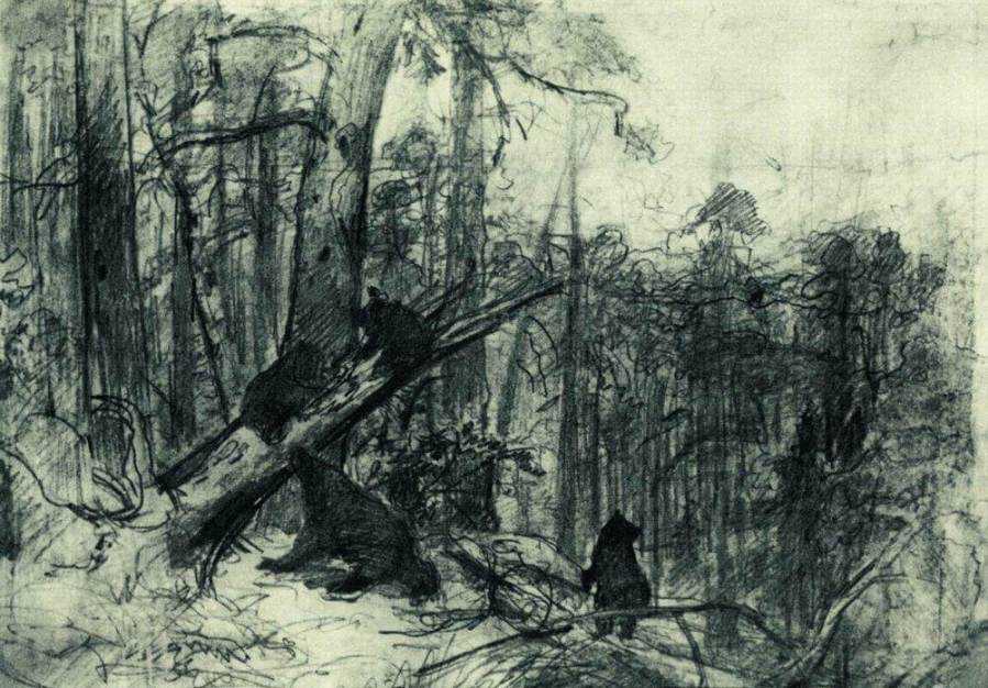 Иван Шишкин. Эскиз к картине «Утро в сосновом лесу». 1889 г. Третьяковская галерея, Москва