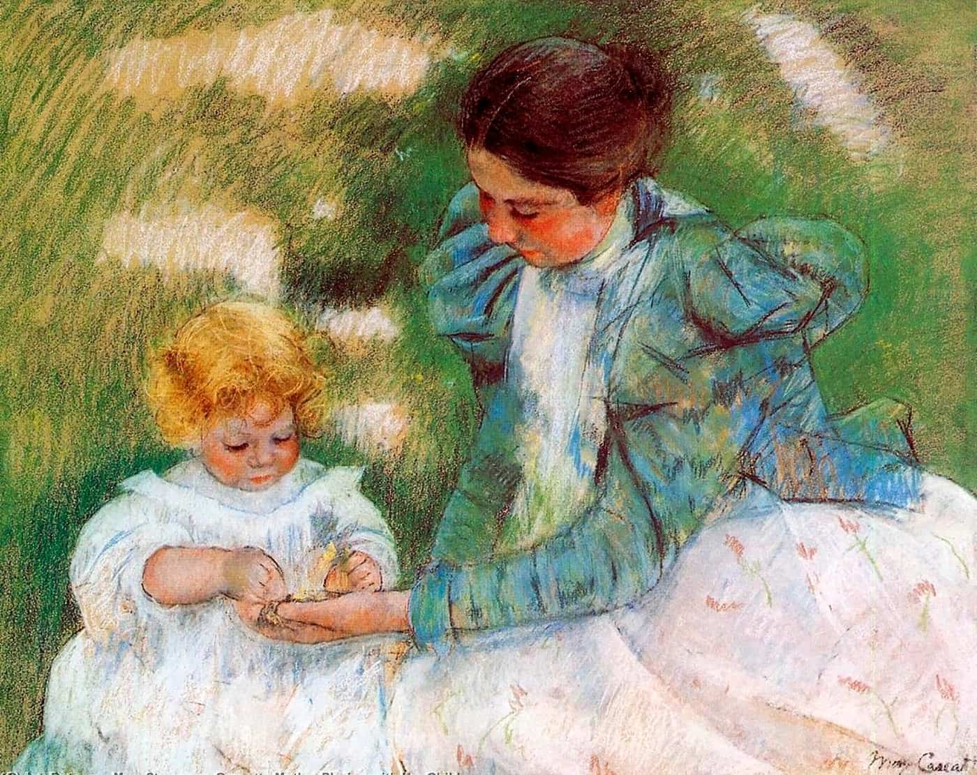 Картина художницы Мэри Стивенсон Кассат “Мама играет с ребенком”.