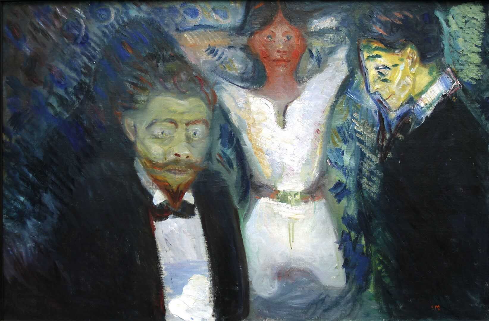 Одной из тем, которую Мунк последовательно и внимательно исследовал десятилетиями, была ревность. Разнообразные интерпретации появляются в живописи, рисунке и гравюрах. Женщина неизменно предстаёт виновницей душевных мук, с ней связаны самые большие страхи героя. Мунк полагал, каждая любовная связь требует жизненной силы, которую следовало бы приберечь для искусства.
