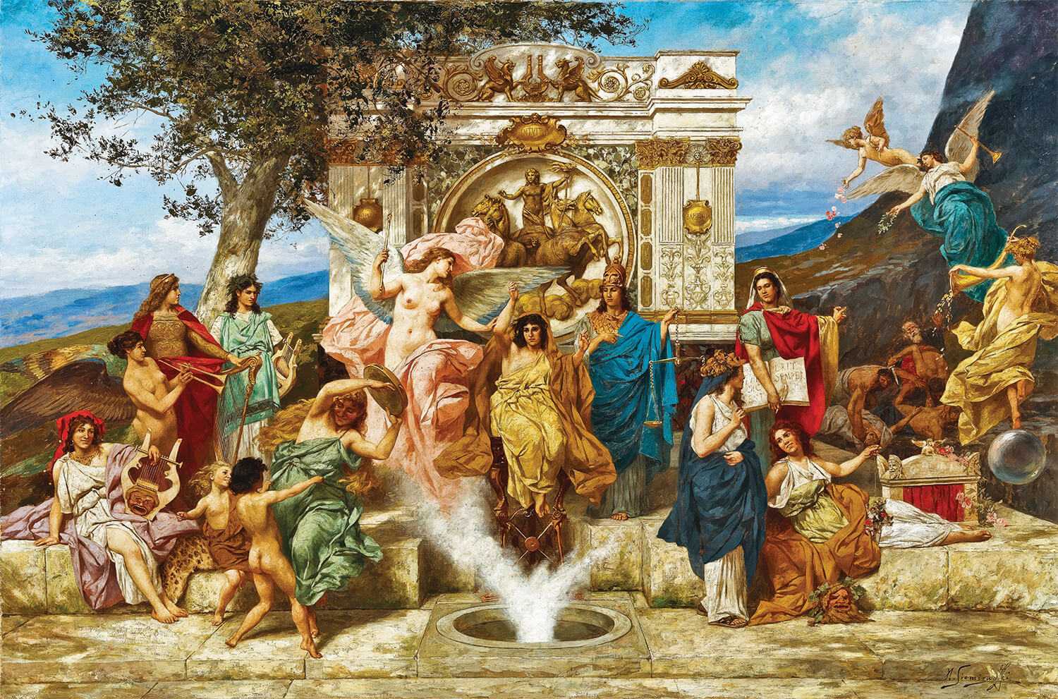 Оргии и вакханалии, пиры и жертвоприношения — в картинах художников-академистов Античность выглядит как dolce vita, даже если это сцена казни. Грешники и святые, сатрапы и мученики, рабы и цари — все, кажется, одинаково прекрасны, как будто написаны специально для старинного календаря Pirelli. За эстетический террор и преклонение перед красотой Генриха Семирадского (1843–1902) обожали цари и недолюбливали передвижники, которые называли его не иначе как «чертополохом, от которого нужно избавиться». Самый авторитетный русский художественный критик XIX века Владимир Стасов считал его безнадежным классиком и сетовал, что «итальянщина его заела». Илья Репин обозвал его шарлатаном, а главный отечественный коллекционер Павел Третьяков отказывался покупать картины Семирадского, не считая того русским художником. И вовсе не потому, что по происхождению Семирадский был поляком. Просто ему действительно красота античного мира и Италии была милее родных осин. Его не волновали ни судьба крестьянства, ни тяжелая доля сирот, он не критиковал власть и не сочувствовал народовольцам. Золотой век человечества ему был куда ближе, чем «правда жизни».