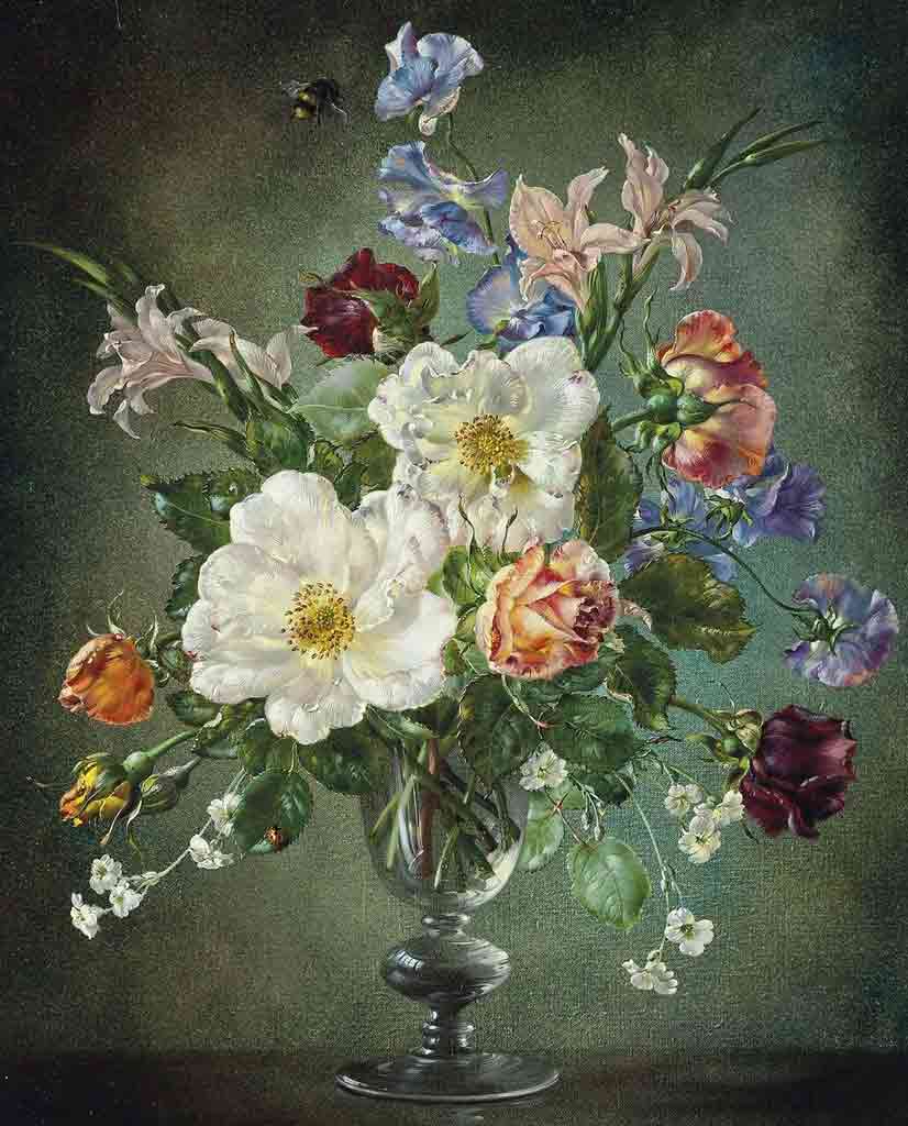 Просматривая многочисленные репродукции художника, я не нашла ни портретов, ни пейзажей – только бесконечная вереница великолепных картин с цветами. Вот поэтому можно сделать вывод о том, что излюбленным направлением живописи Кеннеди был именно натюрморт.