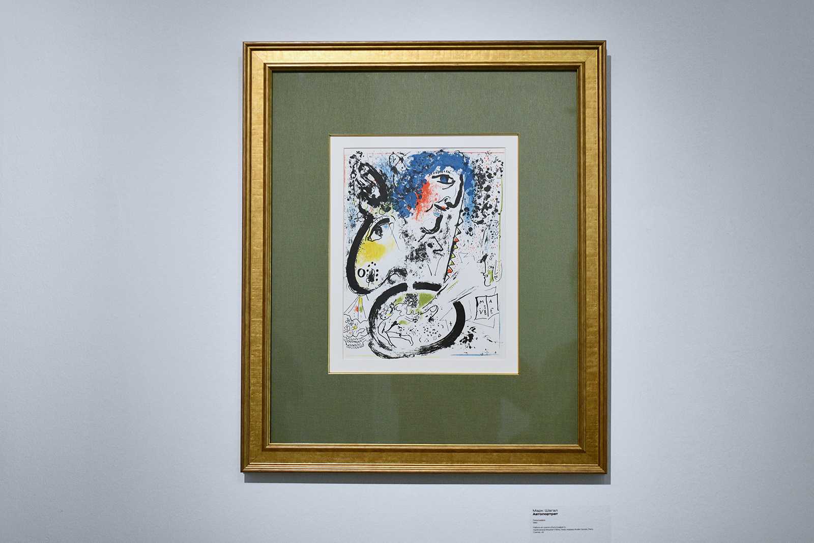 По соседству с этой работой разместили литографию Марка Шагала «Автопортрет» (1960)