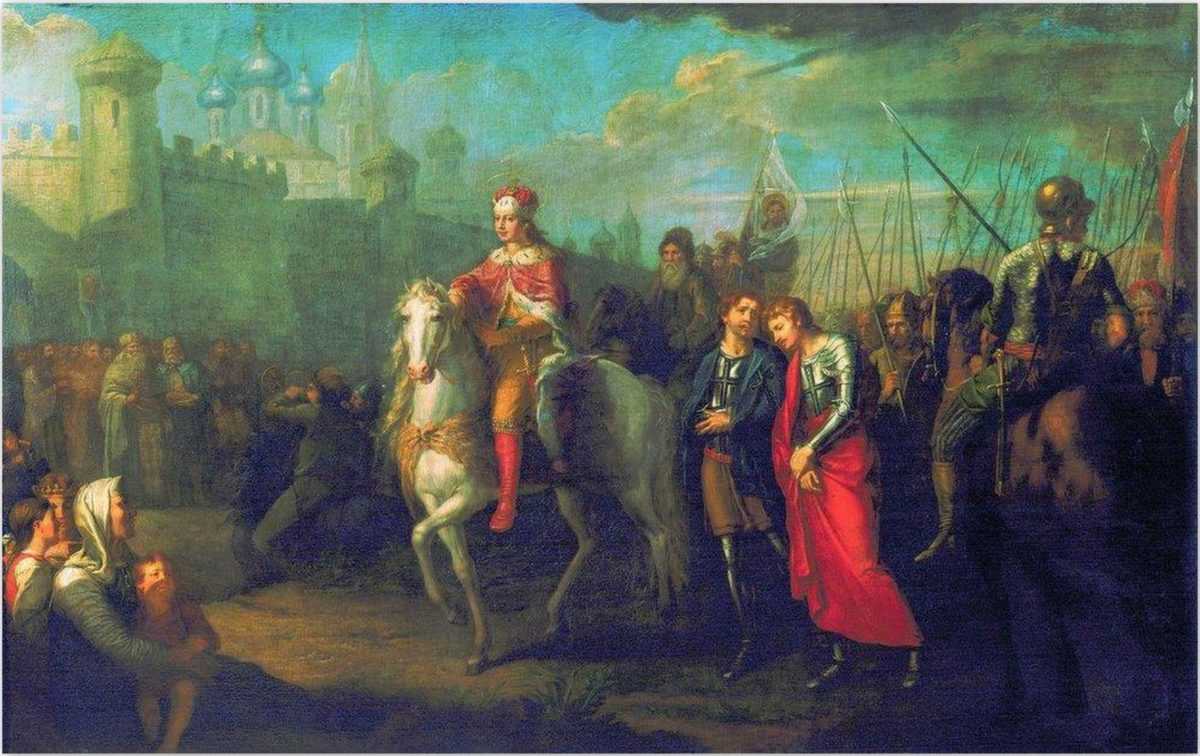 Торжественный въезд Александра Невского в город Псков после одержанной им победы над немцами — Григорий Иванович Угрюмов (1793)