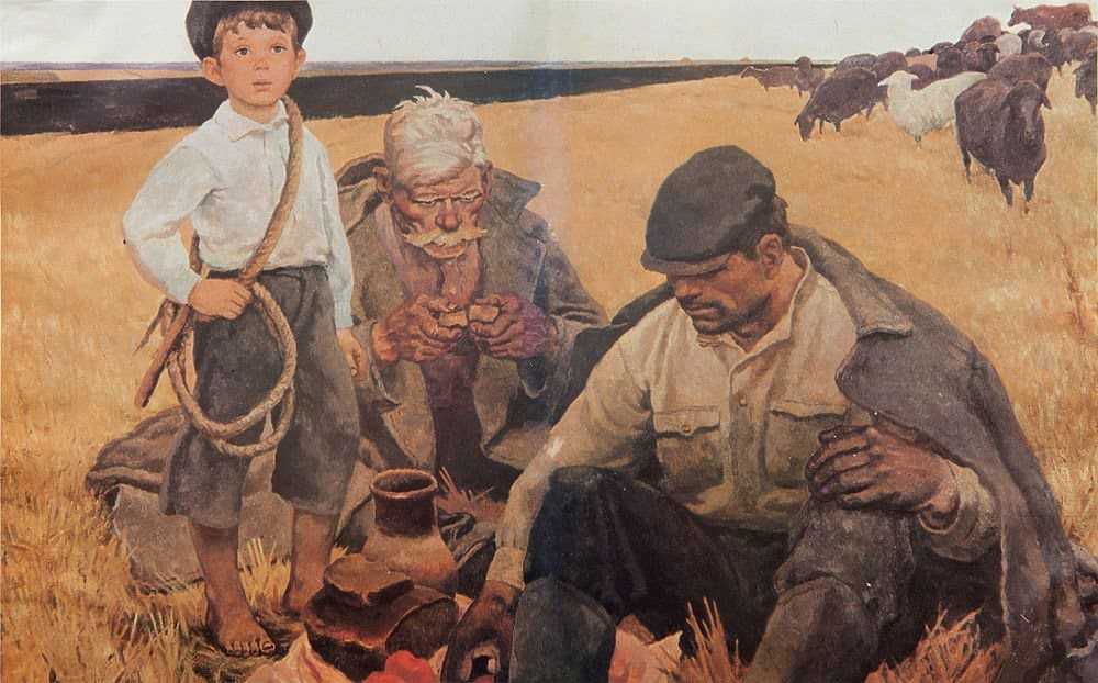 работа А.А. Мыльникова «На мирных полях», радостно ликующая о прекращении войны и о воссоединении человека и труда;