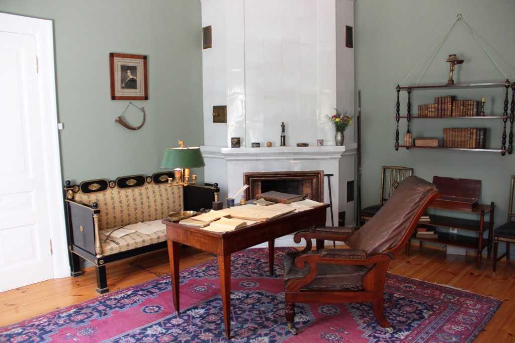 По-другому выглядел кабинет Пушкина и в воспоминаниях русского историка Михаила Семевского, посетившего Михайловское:
