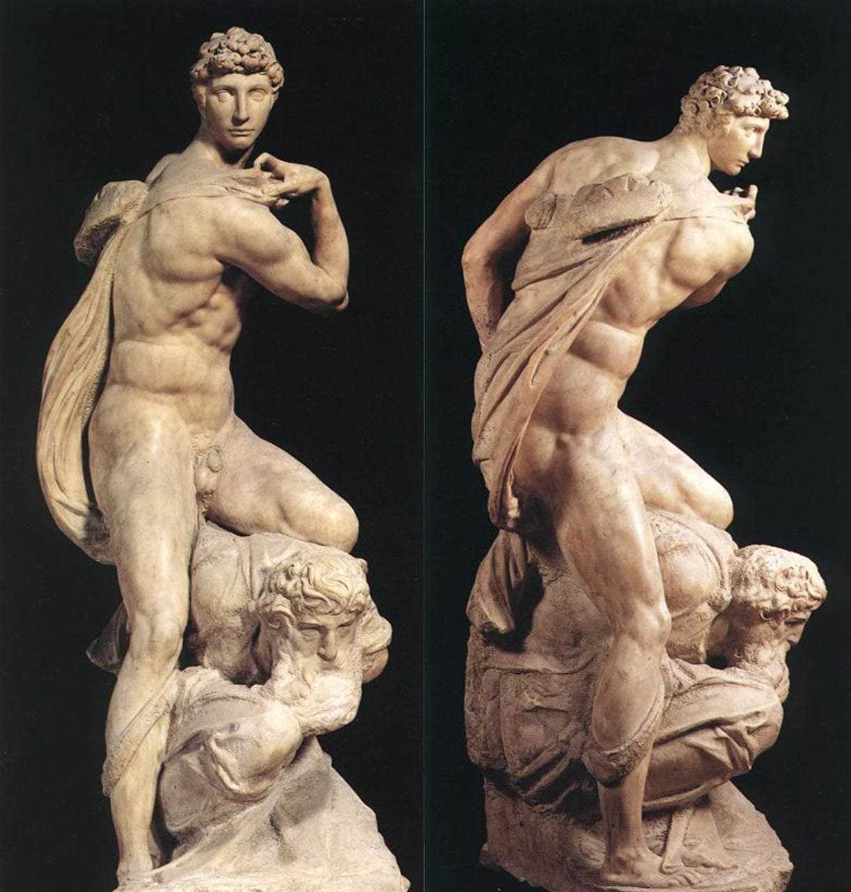 Вероятно самой известной работой Микеланджело является шедевральная скульптура библейского персонажа Давида, который готов к борьбе с Голиафом. Тема Давида и Голиафа являлась достаточно популярной в искусстве того времени. У Караваджо, например, есть три работы посвященные этому сюжету.