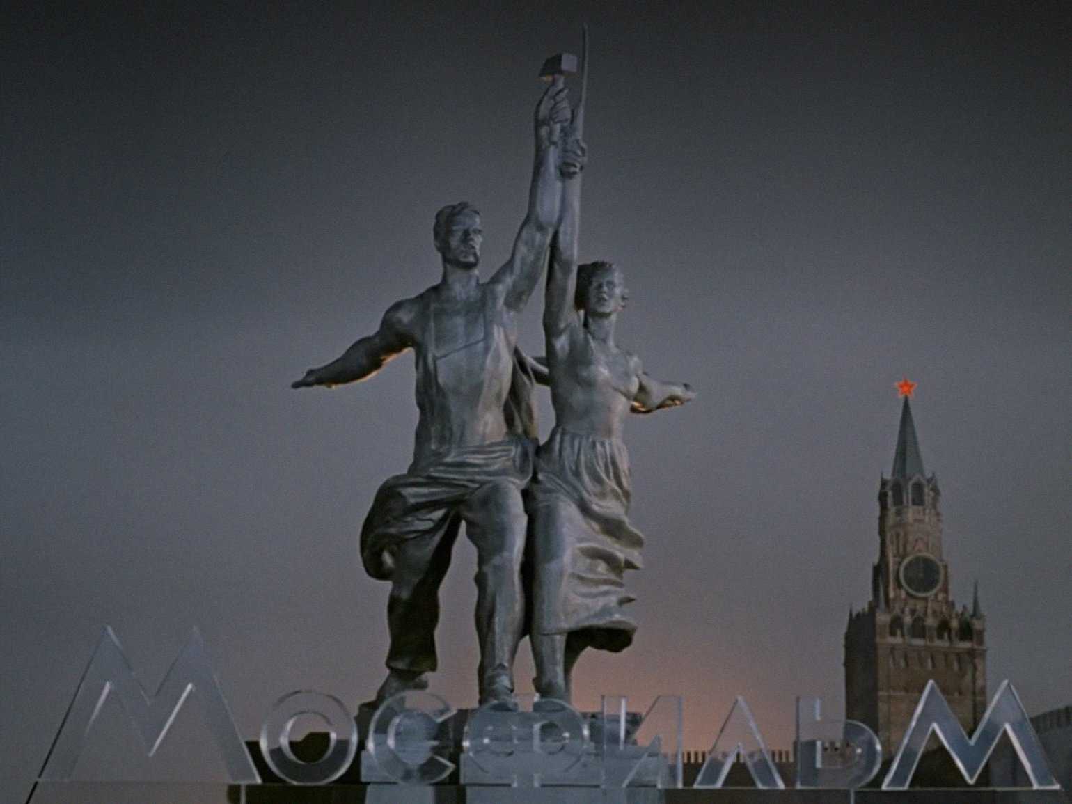 - Сразу после установки скульптуры в Москве, в июле 1939 года, её увидели на киноэкранах миллионы советских зрителей в фильмах «Подкидыш» (1939 г.) и «Светлый путь» (1940 г.)
