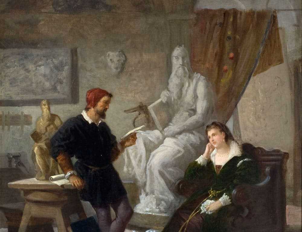 Энрико Фанфани «Микеланджело читает стихотворения Виттории Колонне», конец XIX века
