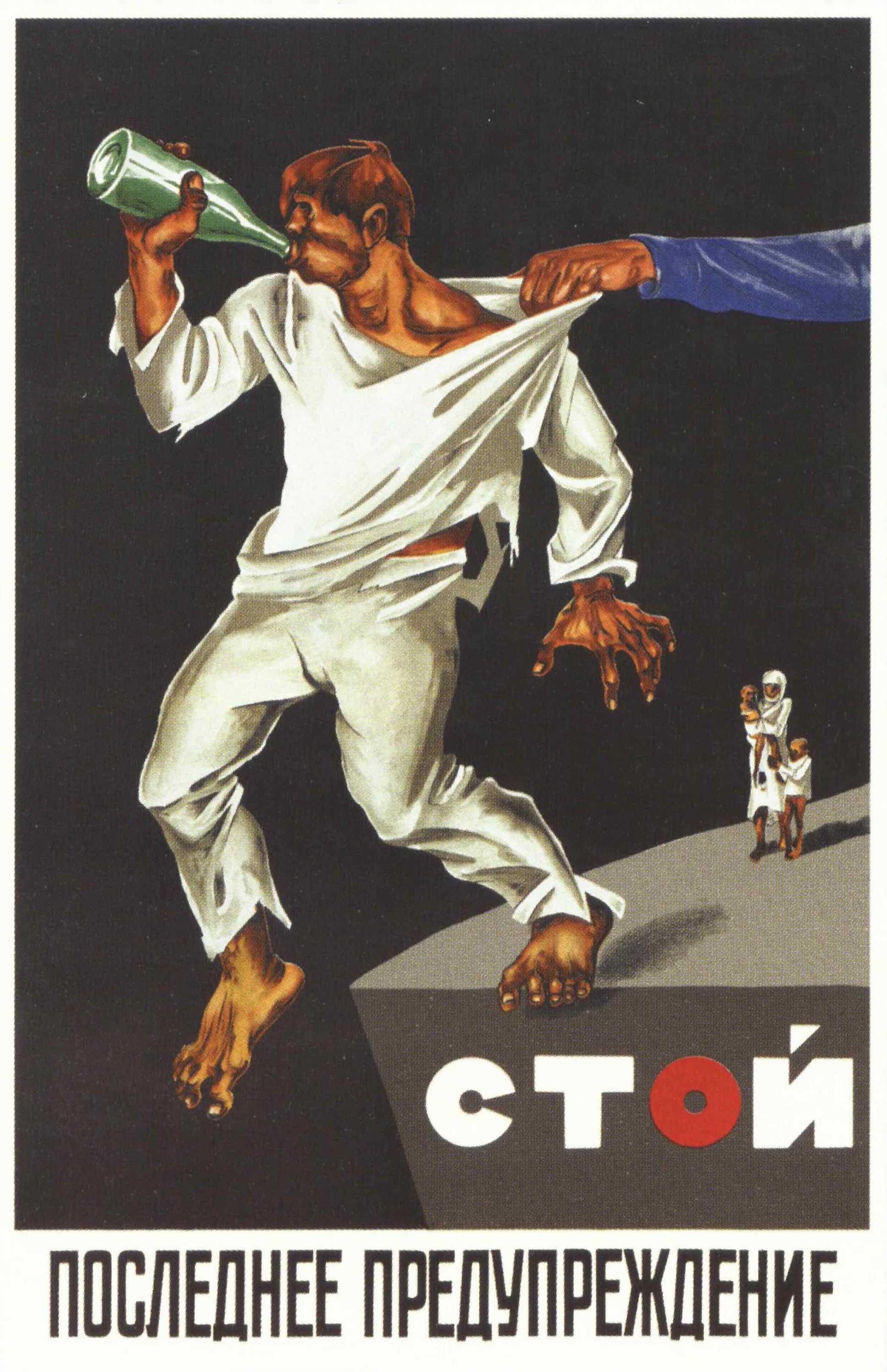 Можно видеть плакаты по теме употребления алкоголя см. приложение рис.: 4, 42, 46, 51, 54 и 75. В плакате рис.79 предупреждают о последствиях аборта