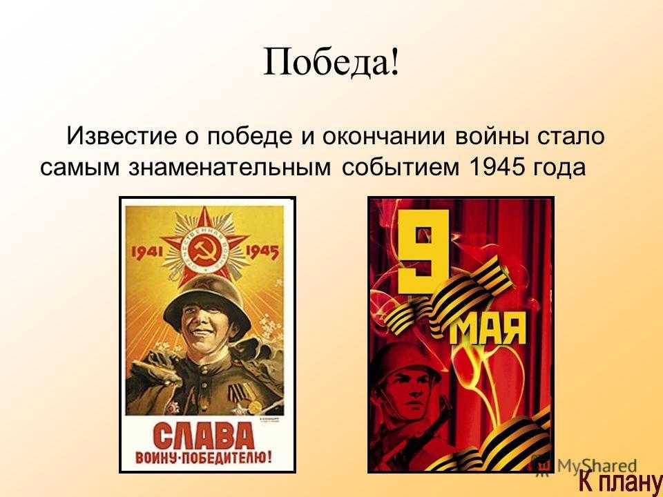 Победа ! Известие о победе и окончании войны стало самым знаменательным событием 1945 года