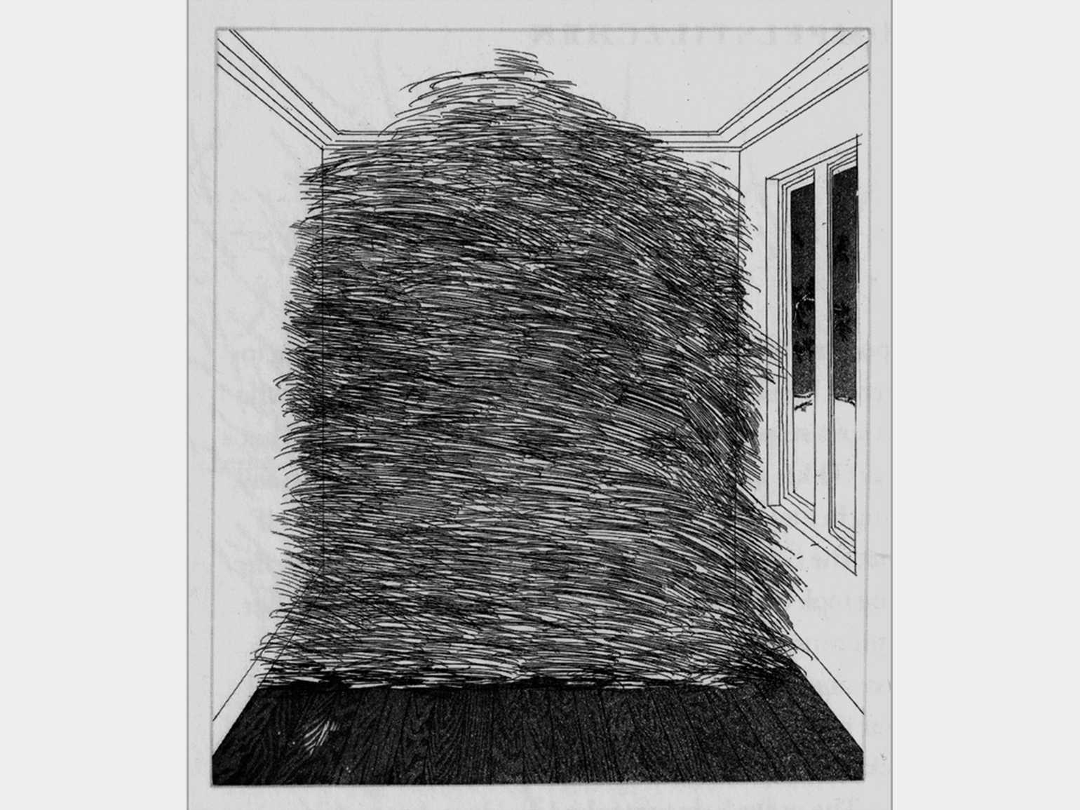 «Комната, наполненная соломой». Иллюстрация: Дэвид Хокни / иллюстрация к сказкам Братьев Гримм
