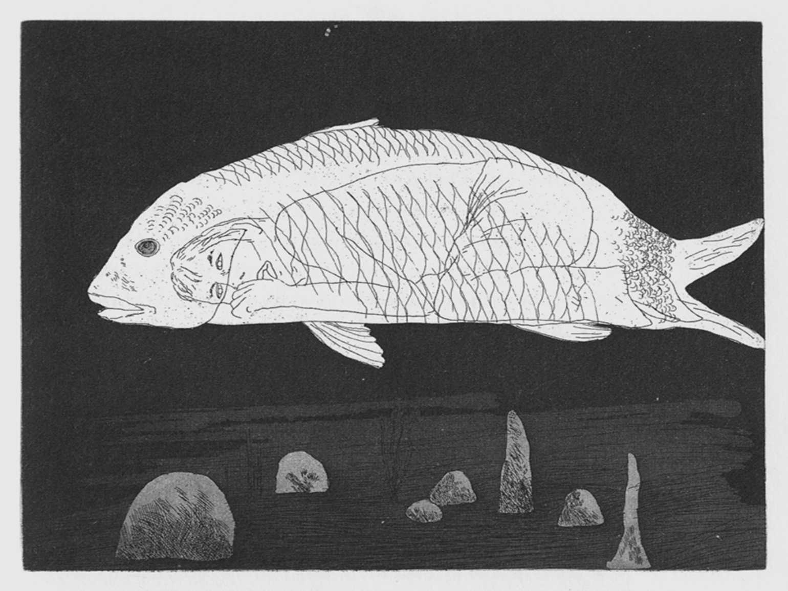 «Мальчик, спрятанный в рыбе». Иллюстрация: Дэвид Хокни / иллюстрация к сказкам Братьев Гримм