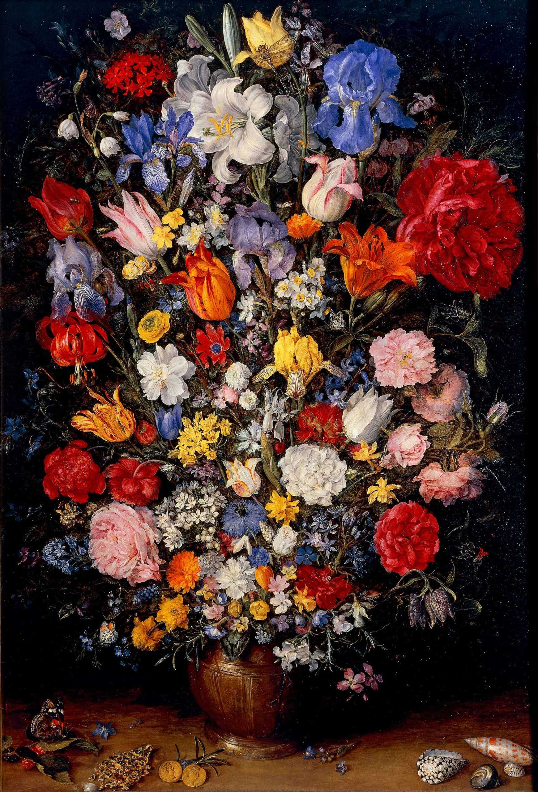 Ян Брейгель Старший в течение творческой жизни сформировал собственный стиль и рынок, сделав себе имя как мастер натюрморта, а также как удивительный живописец флоры и фауны. Сотрудничал с ведущими художниками эпохи, включая Питера Пауля Рубенса, Йооса де Момпера Младшего, Хендрика ван Балена. Художник получил прозвища «Бархатный», «Цветочный», «Райский» за виртуозную «гладкую» живопись, утонченный колорит и тончайшие лессировки. На торгах Sotheby’s в Лондоне 9 июля 2014 года был установлен ценовой рекорд ($11,652,106) на полотно Яна Брейгеля Старшего. Столь высокая цена была продиктована не только качеством живописи, но и тем, что полотно вышло на рынок из герцогской коллекции впервые за более чем 150 лет. Натюрморты Брейгеля Бархатного — настоящая отрада для глаз, они поражают богатством цвета и виртуозностью живописи. В российской частной коллекции Валерии и Константина Мауергауз представлен цветочный натюрморт «Букет из ирисов, тюльпанов, роз, нарциссов и рябчиков в глиняной вазе» Яна Брейгеля Старшего. Картина экспонировалась в рамках проекта «Младшие Брейгели» в ГМИИ им. А. С. Брейгеля и Новом Иерусалиме. В 2012 году известный эксперт по творчеству Брейгеля Фред Мейер атрибутировал этот натюрморт как работу Яна Брейгеля Старшего.