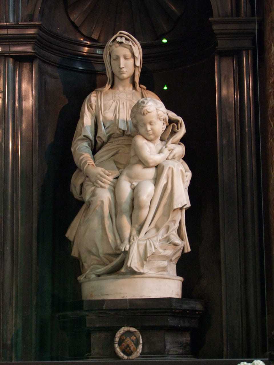 - Мадонна съ младенцемъ. Мраморъ. Ок. 1501. Брюгге, церковь Нотръ-Дамъ.