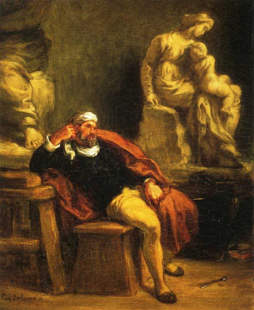 В первую очередь по его дарованию его стоит считать скульптором, что прослеживается даже его живописи – в работах много сложных поз, пластичности движений, отчетливой рельефности и объемности.