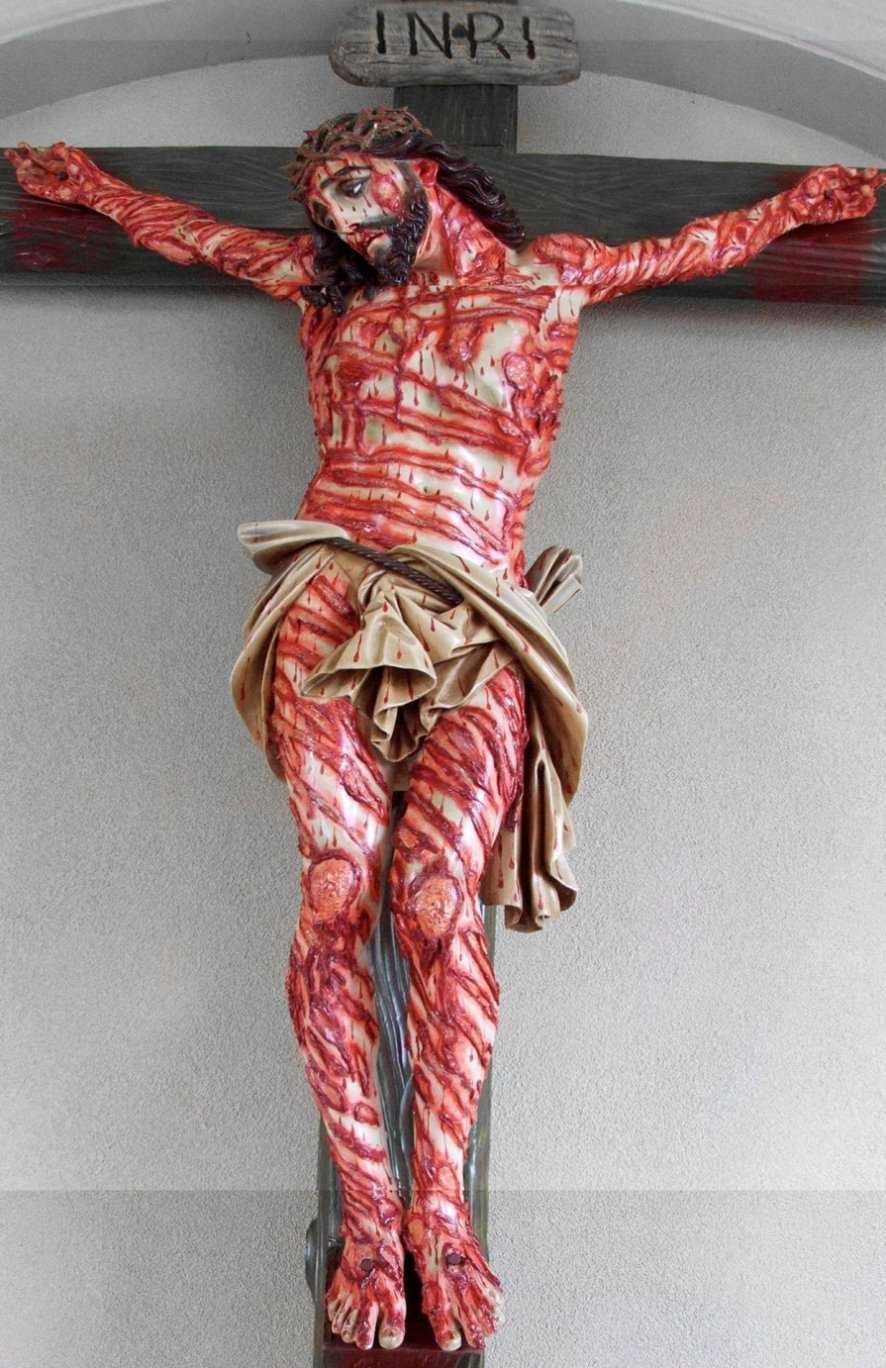 В отличие от православной иконы распятия Господня, здесь мы видим не образ Христа, который «во гробе плотски, во аде же с душею, яко Бог, в раи же с разбойником, и на престоле был еси, Христе, со Отцем и Духом, вся исполняяй, неописанный» (тропарь праздника Пасхи). Здесь – образ мертвого тела. Здесь не смиренная молитва в ожидании Воскресения, а нездоровая медитация на кровь и раны. И именно этот момент, а не количество гвоздей, наличие или отсутствие тернового венца, язык надписания таблички и т. д., отличает католическое видение страстей Христовых от православного.