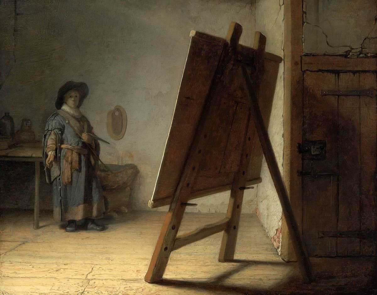 К этой группе примыкает картина «Художник в своей мастерской» (1628; возможно, это автопортрет), на котором художник запечатлел себя в мастерской в момент созерцания собственного творения. Холст, над которым ведётся работа, вынесен на первый план картины; в сравнении с ним сам автор кажется карликом.