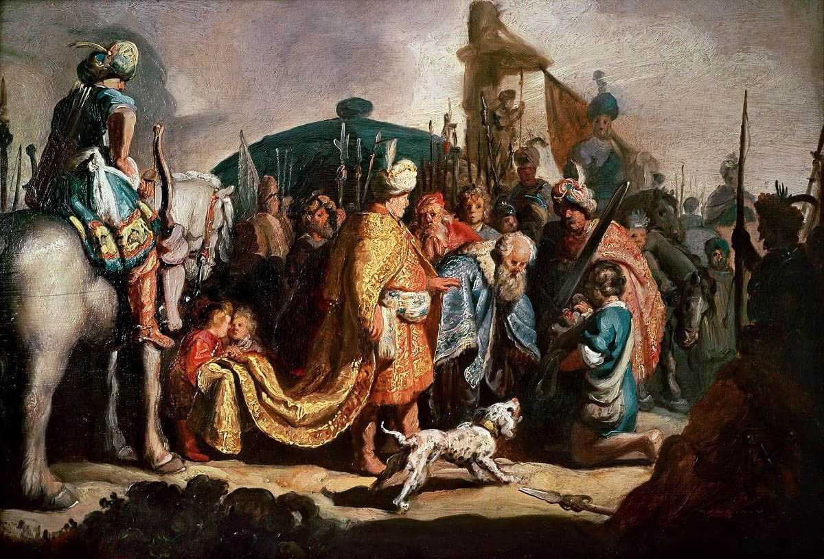 Под руководством своего первого наставника, Якоба ван Сваненбюрха, Рембрандт освоил лишь азы мастерства. Истинным учителем он считал Питера Ластмана (1583-1633). В молодости Ластман побывал в Италии, где навсегда влюбился в работы мастеров эпохи Ренессанса. Он считал, что для создания великой картины требуется, прежде всего, значительный исторический или мифологический сюжет. Рембрандт тоже любил сюжетную живопись, чем отличался от большинства своих голландских современников, привязанных к окружающей жизни. Особенно его привлекала библейская история, которую он знал буквально наизусть.