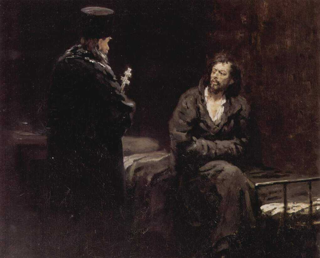 Вдохновленный этим произведением, он решил написать картину «Исповедь», которую после революции решили переименовать в «Отказ от исповеди перед казнью».
