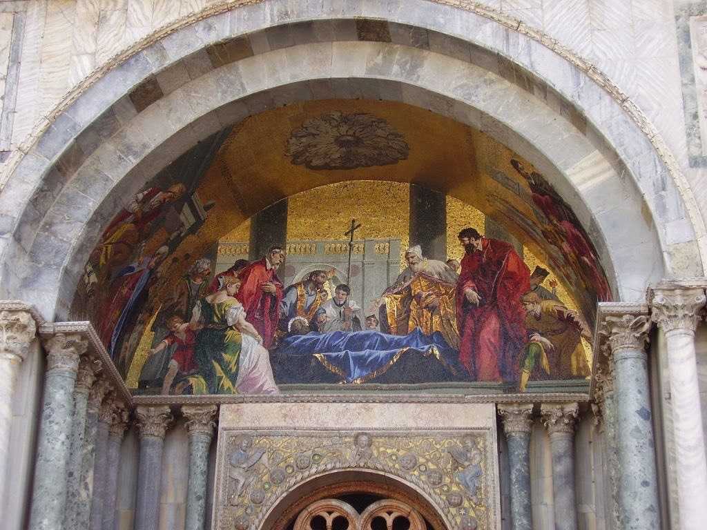 ️ Византийское влияние видно по Собору св. Марка, покровителя Венеции. Он украшен большим количеством мозаик, для которых характерны яркие цвета, торжество света и мерцания. Кстати, во время учебы Тициан занимался реставрацией мозаик Собора св. Марка, и это повлияло на его отношение к цвету.