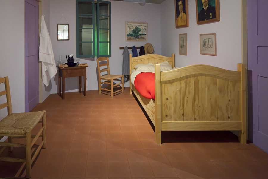 Обстановку для своего нового пристанища Ван-Гог выбирал сам. Местные прочные деревянные кровати показались ему символом устойчивости и спокойствия, которых ему не хватало в жизни. По этой же причине, чтобы достичь своеобразного равновесия, он приобретал предметы парами: стулья, подушки, даже кровати. Впрочем, вторая кровать предназначалась конкретному человеку — Полю Гогену, приезда которого Ван-Гог ожидал с нетерпением. К сожалению, вместо обсуждения перспектив Южной мастерской художники погрязли в спорах и истериках.