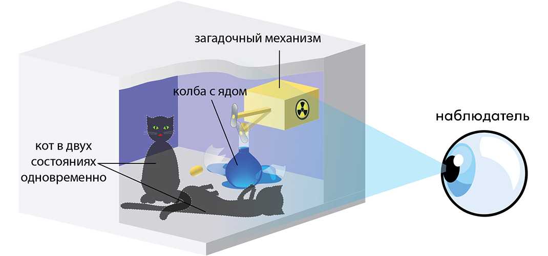 Мы узнаем, жива кошка или нет, только тогда, когда откроем ящик. До этого момента кошка, также как и радиоактивный атом, существует сразу в обоих состояниях: она и жива и мертва одновременно. С бытовой точки зрения звучит парадоксально, но в квантовой механике это обычное явление, когда физическая система находится одновременно в нескольких квантовых состояниях.