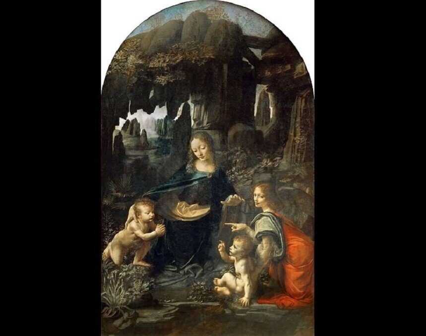 Картина «Мадонна в скалах» датируется 1483-1486 годами, пейзаж на ней оставался не на заднем фоне, а словно бы окружал фигуры святых. На полотне изображена встреча Иисуса и Иоанна Крестителя в младенчестве. Картина имеет интересную историю создания, существует две почти идентичные такие картины.