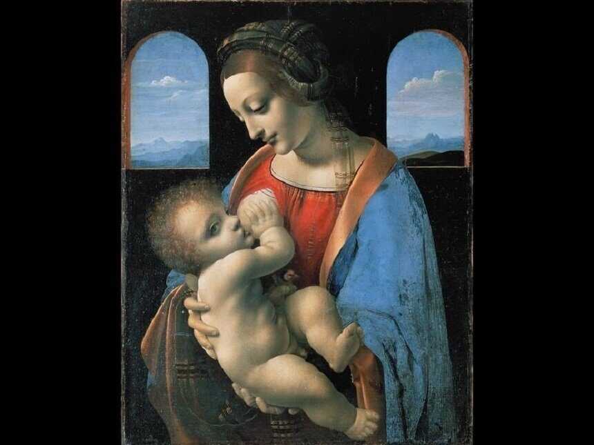 Годы написания картины «Мадонна Литта» вызывают споры, называются даты с 1478 до 1495-го года. На ней изображена женщина, которая кормит грудью свое дитя.