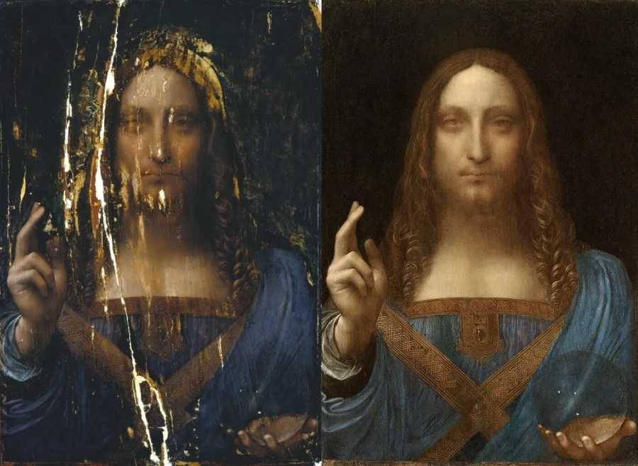 Слева: Спаситель мира в 2005 году (после снятия поздних слоёв краски)
