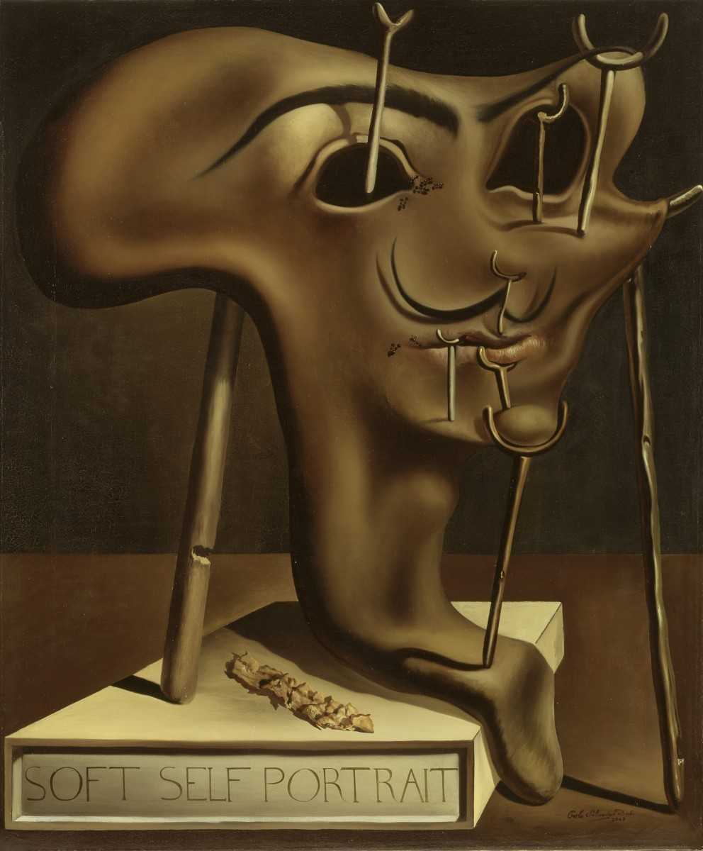 Одной из ключевых работой, представленных на выставке, является «Мягкий автопортрет с жареным беконом» 1941 года. Эта картина представляет собой символ обновления и новой жизни, которая началась у Сальвадора Дали после переезда в США. Здесь он раскрыл себя в новых сферах: работал с мирами литературы, театра, моды, создавая имидж универсального художника. «Мягкий автопортрет с жареным беконом» отражает ироничное восприятие художником своей сущности. Словно змея, меняющая кожу, автопортрет воплощает и авангардные идеи европейского общества, и принципы американского общества потребления.