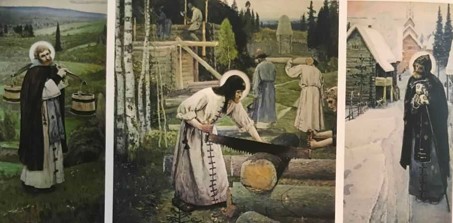 Действительно, “Видение отроку Варфоломею” – самая известная картина художника. Она так и осталась самой значимой из всего цикла картин о Сергии Радонежском. Вот триптих, который также был посвящен этому святому.