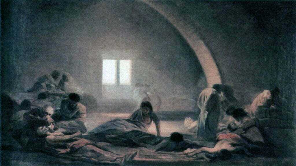 Современную ему Испанию Гойя изобразил в серии гравюр известной под названием «Капричос». Самая известная работа в серии – «От какой болезни он умрет?». Художник вновь обращается к страшной теме, изображая тело при смерти, теперь уже в контексте судьбы страны.