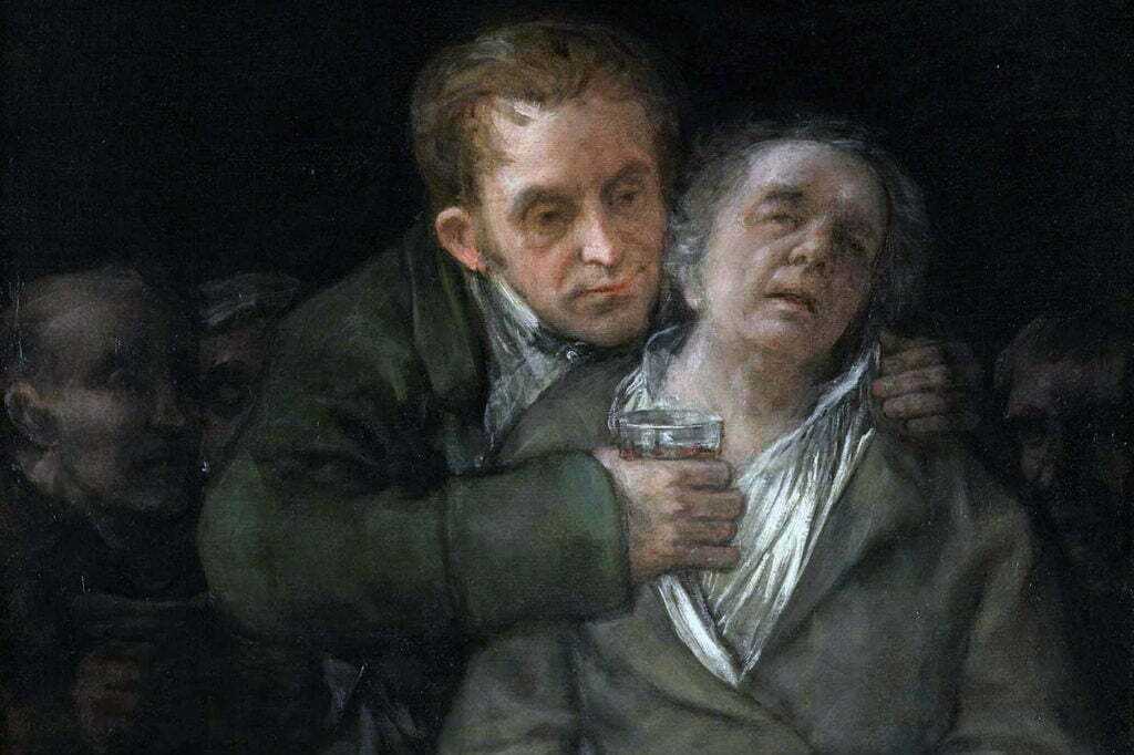 Примечательно, что с первых дней своего заболевания мастер включает в свои картины медицинскую тему. Полотно «Врач», написанное им еще начальный период творчества, является пророческим. Нередко мы видим картины художника с изображением страдающих людей. К таким картинам можно отнести «Госпиталь зачумленных» и «Госпиталь умалишенных». В этих и других его работах четко прослеживается намек на больное общество, в котором живет Гойя.